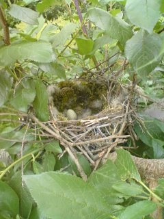 さて、写真はプルーンの畑で見つけた(たぶん)オナガの巣。小枝や苔などが材料でわりと大きめ。相変わらず上手に作るね。留守の巣にはぽつんと一つだけ卵が残されていた。オナガの卵か、それともカッコウが托卵したものなのか。