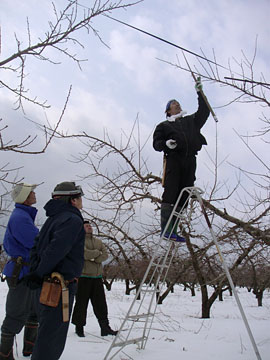 寒空の下、JA青年部の有志を中心に「剪定情報交換会」が行われた。