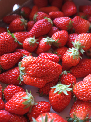 アスパラのお返しにと戴いたいちごたち。赤くてつやつや。この甘酸っぱい香り。なんて幸せだろう。私たちのハウスでの収穫はあと1ヶ月そこそこだが、彼は初夏まで続く。お互い熱中症には気をつけようね。