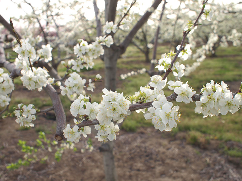 昨年に比べて開花が遅れたが、ここ数日の暖かさで「くらしま早生」も「サンタス」も一気に満開になった。
