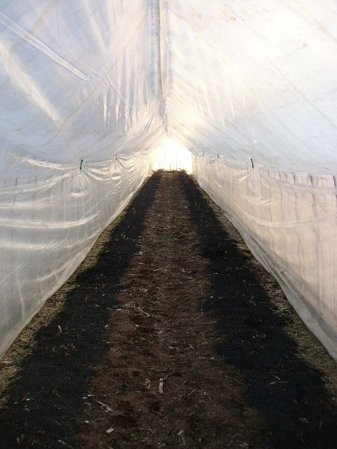 内部を蒸し風呂のようにして地温の上昇を待ちます。